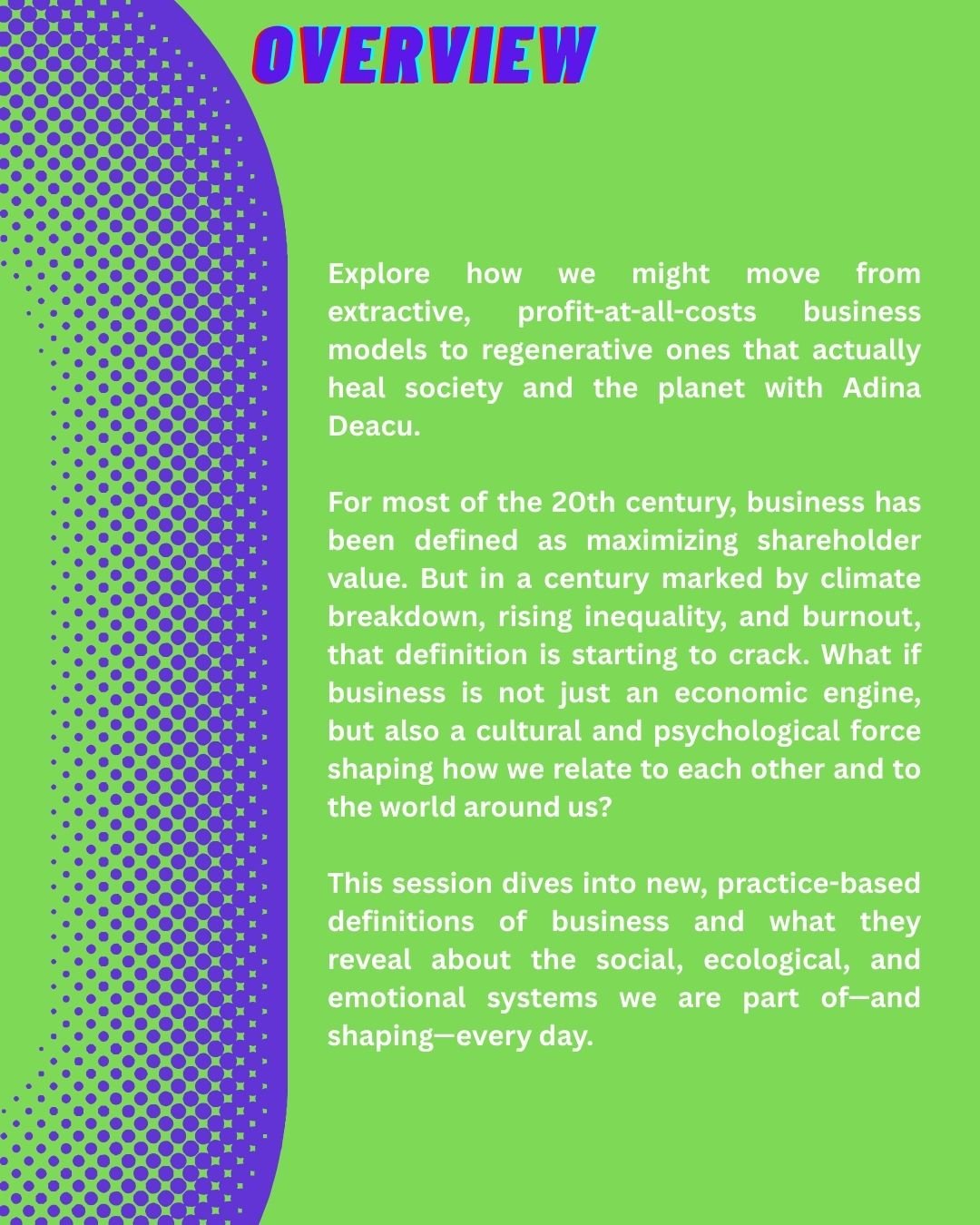 This session dives into new, practice-based definitions of business and what they reveal about the social, ecological, and emotional systems we are part of—and shaping—every day.